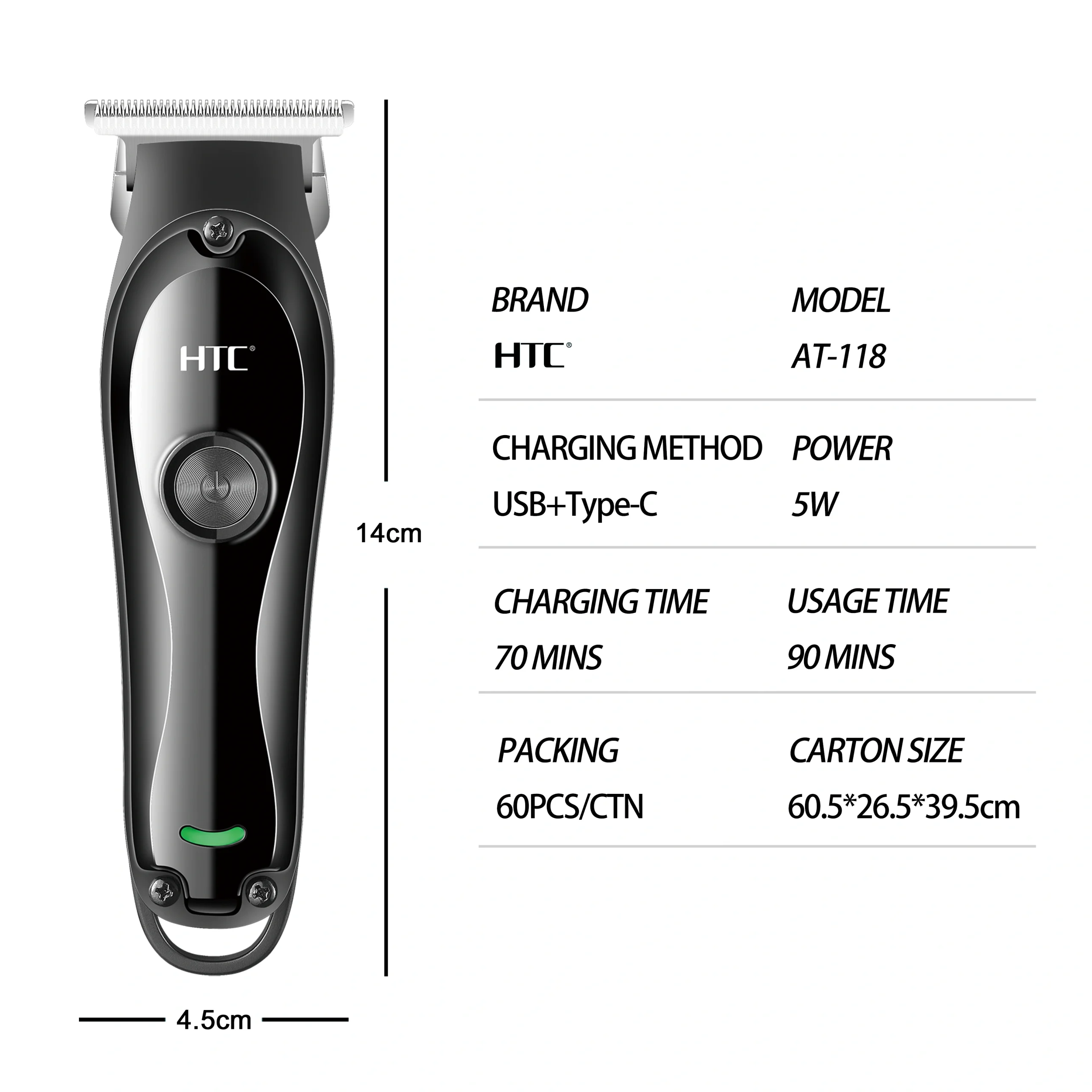 HTC AT-118 Cordless Hair Trimmer Small Professional Electric Hair Clipper and Beard Trimmer for Men
