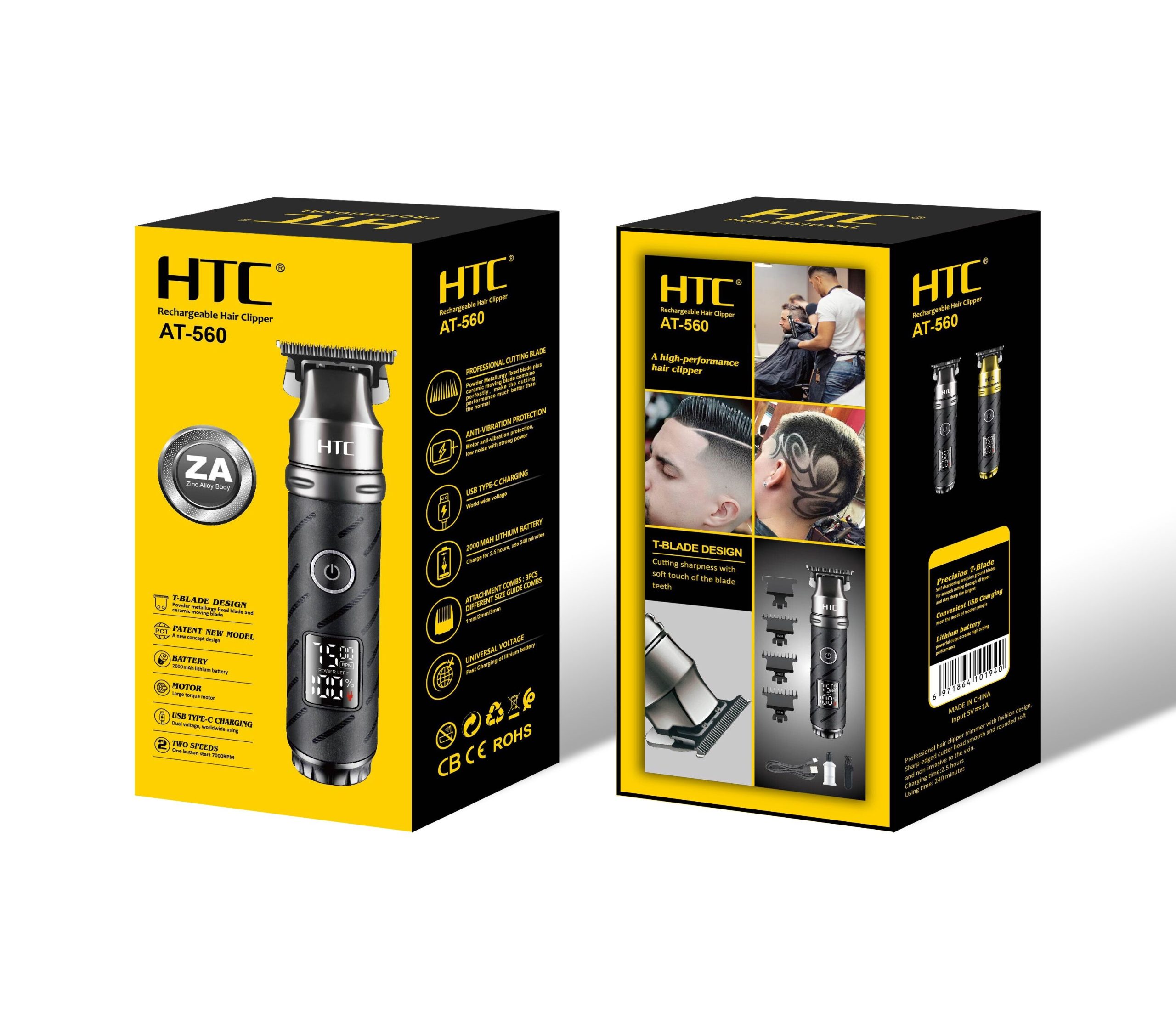 HTC AT-560 Popular Powder Metallurgy Blade Hair Trimmer USB Cordless Men Hair Cutting Machine Trimmer