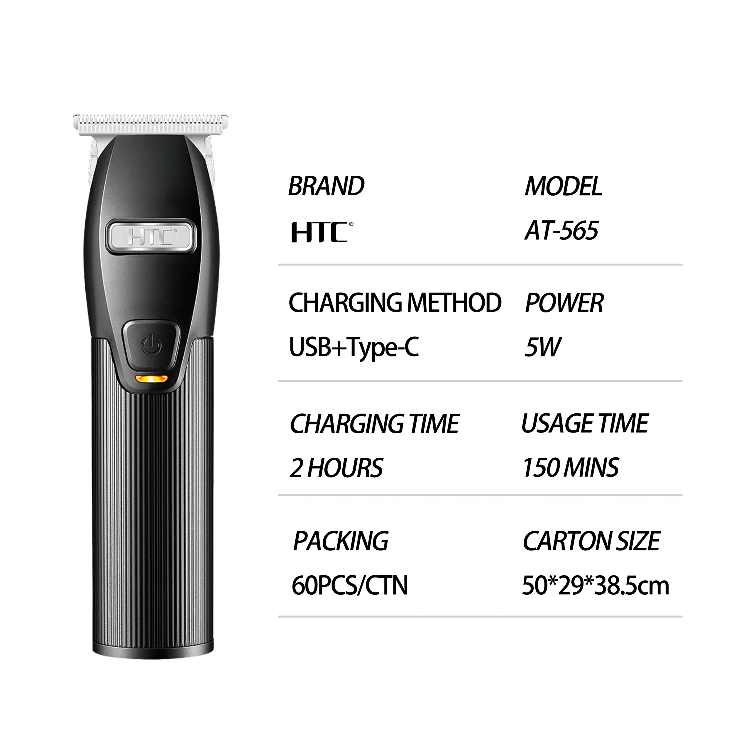 HTC AT-565 Professional Hair Clipper Rechargeable Hair Trimmer for Men Home Use Clipper Trimmer