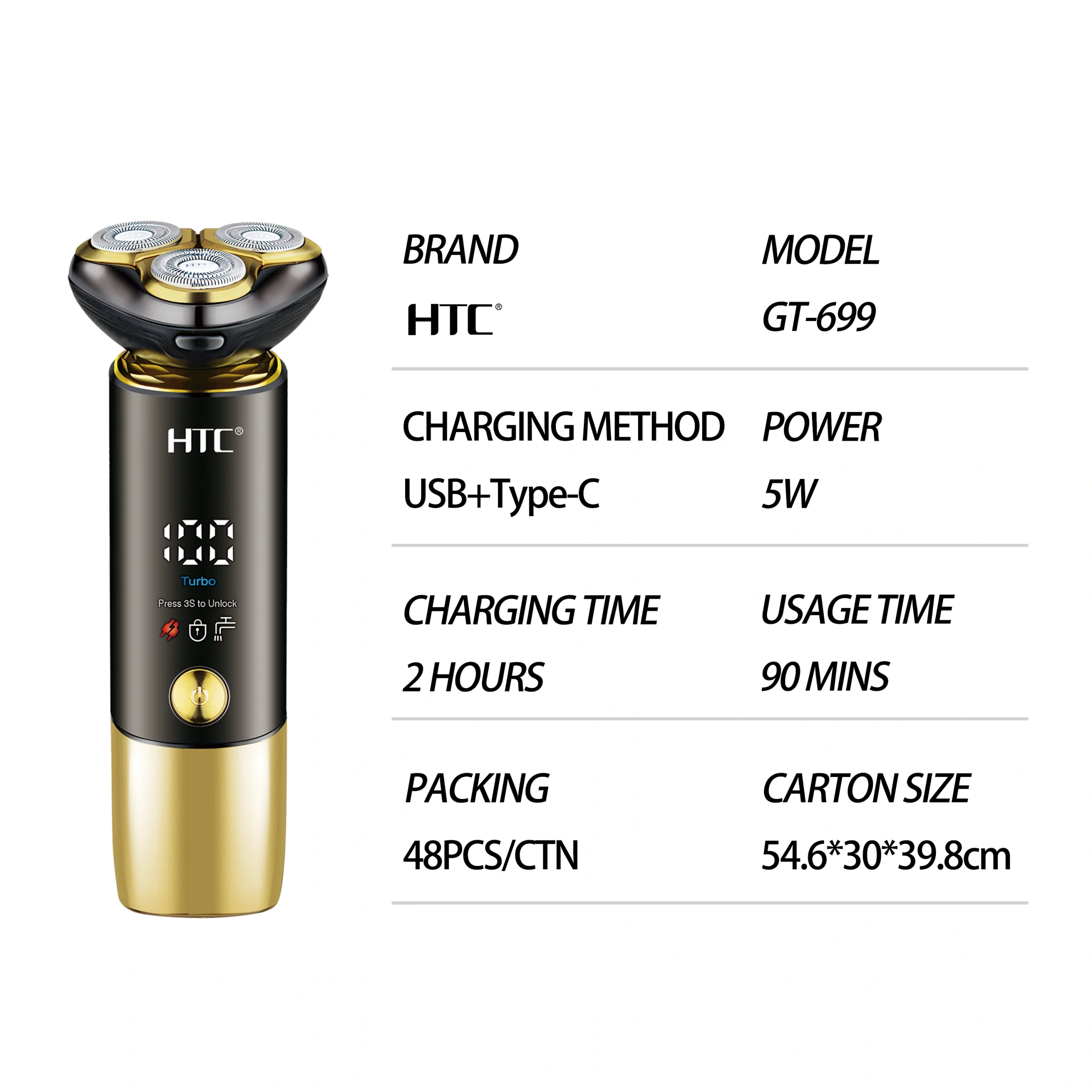 HTC GT-699 3 Seconds Travel Lock Man Washable Cordless Shaver Trimmer for Travel