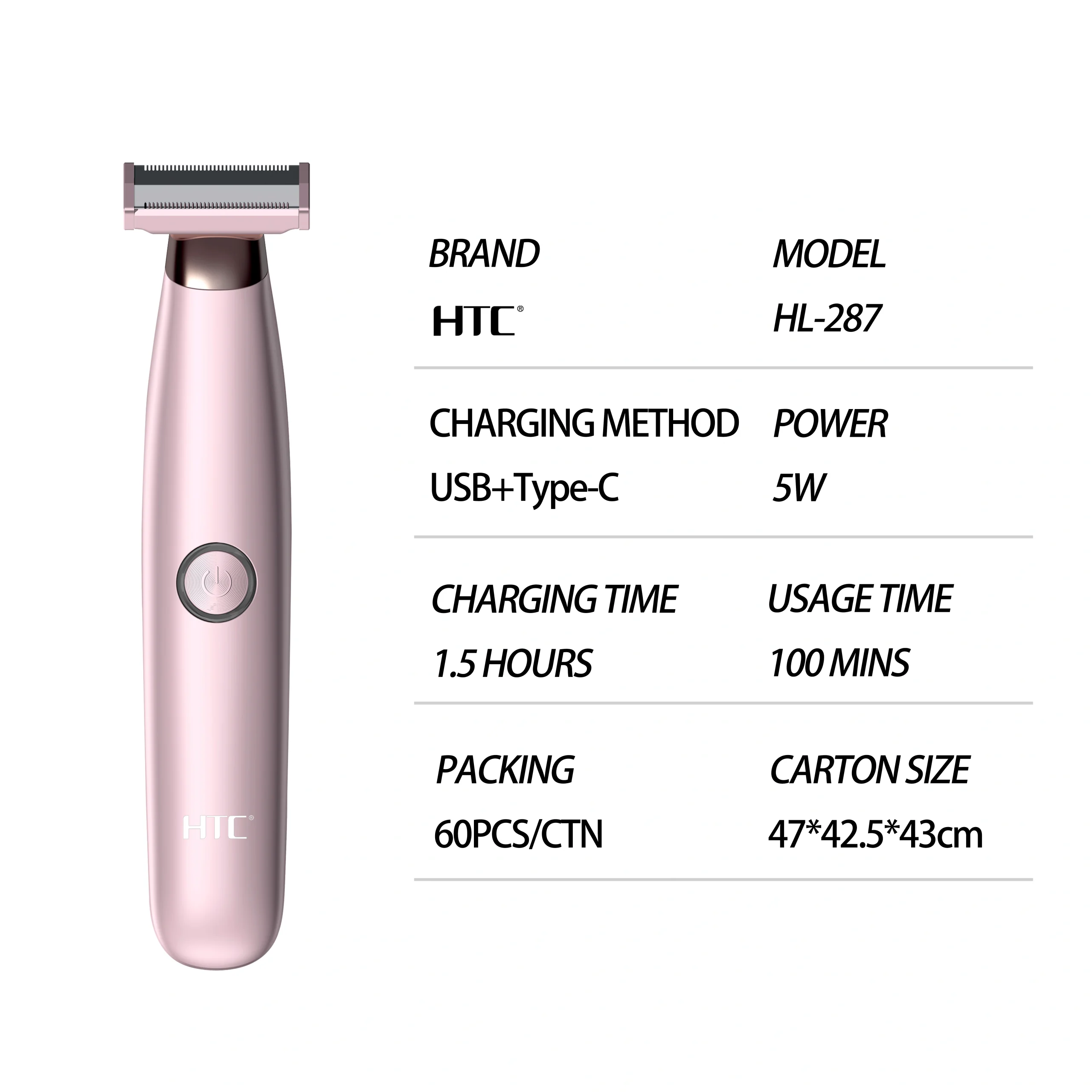 HTC HL-287 Washable Lady’s Foil Shaver Body Hair Removal for Legs and Underarms Women Trimmer Razor