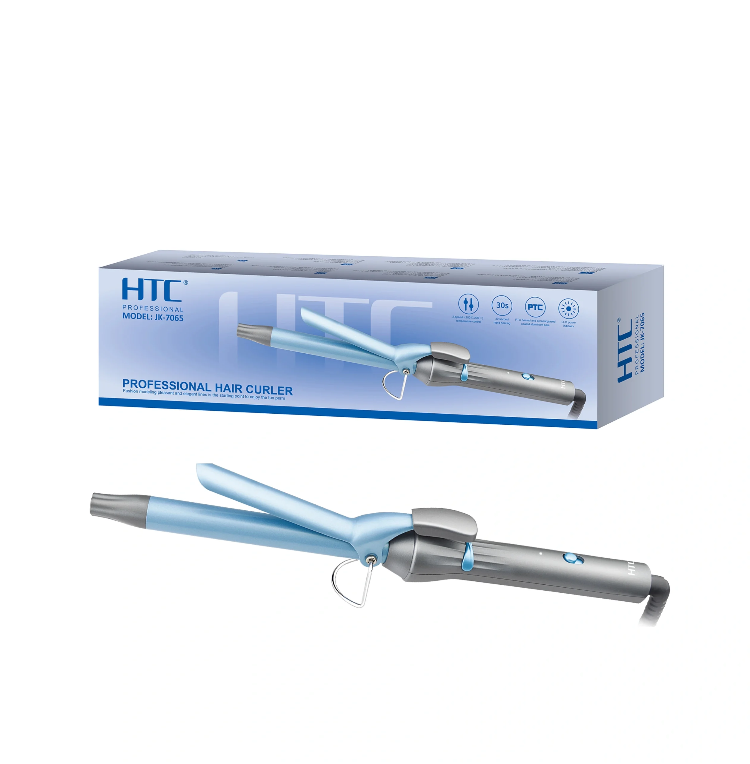 HTC JK-7065 LED Hair Curler 2 Speeds Temperature Control Hair Curler PTC Heated and Ceramic Glazed Coated Aluminum Tube Curler